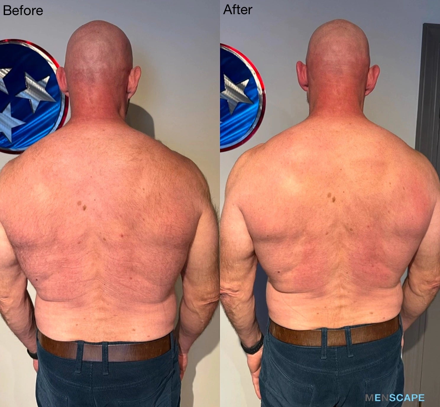 Our Back Shaving Service is one of the many professional manscaping services we offer. Our licensed estheticians use professional grade trimmers to remove the back hair. After we shave the hair, we also use a foil shaver to get a smoother finish than you would typically get on your own.